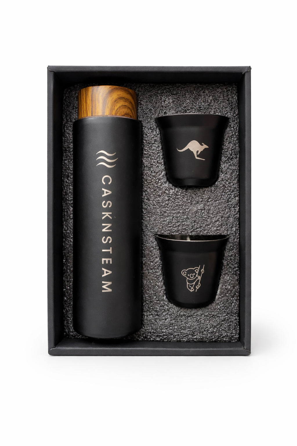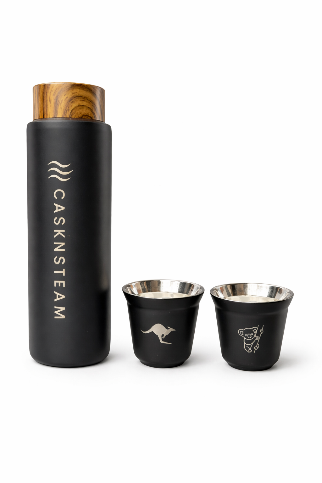 A sleek insulated bottle paired with two premium stainless steel cups, crafted for those who believe great moments are meant to be shared.